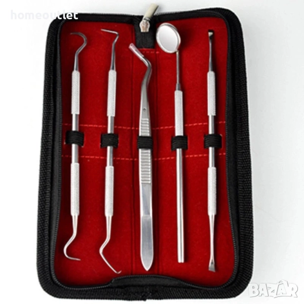 Поддържайте усмивката си блестяща в домашни условия с този комплект от 5 висококачествени стоматологични инструменти, предназначени за безопасно и ефективно премахване на зъбен камък и налепи.