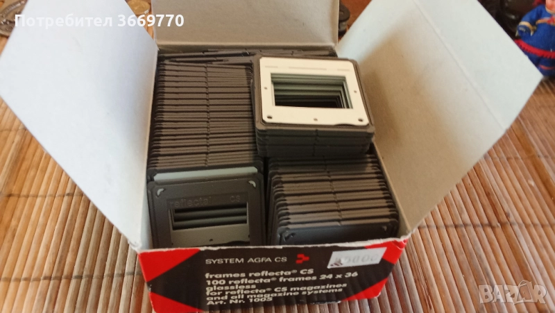 Лот от 98 нови винтидж диапозитиви Reflecta система Agfa CS. Диапозитивите са съвместими с разпространените в България прожекционни апарати от соца. Чудесна възможност да поставите в тях вашите лентови филми (стари или нови) и да се наслаждавате на незабравими прожекции.