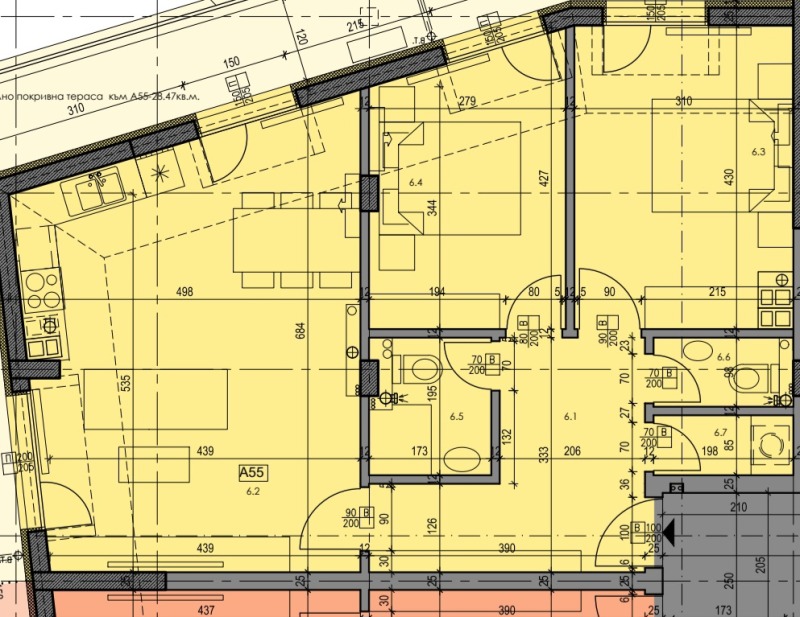 Предлагаме за продажба непреходен двустаен апартамент в нова бутикова сграда в кв. Дружба 1, ул. 5037 в строеж. Чудесна локация в близост до спирки на градски транспорт и метростанция. Апартаментите ще бъдат завършени на мазилка и подова замазка, входна блиндирана врата, монтирани ключове/контакти, луксозни общи части. Разполагаме с двустайни и тристайни апартаменти и подземни и наземни паркоместа. Апартамент А55 се намира на седми етаж в тухлена сграда с ТЕЦ, площ от 124,02 кв.м. и 80,40 кв.м застроена площ и ПАНОРАМНА ТЕРАСА ОТ 28,47 кв.м, общи части -15,15кв.м Разпределение: антре, дневна с кухня, две спални, баня с тоалетна, тоалетна, килер и ТЕРАСА 28,47 кв.м. Изложение: запад-северозапад В близост до 13 ОДЗ Калинка (между блок 85 и блок 88) и 108 СУ Никола Беловеждов -Иновативно училище по предприемачество и бизнес Формат Строй ООД e доказан строител с богат опит. Ние гарантираме качествено строителство на отлични цени!