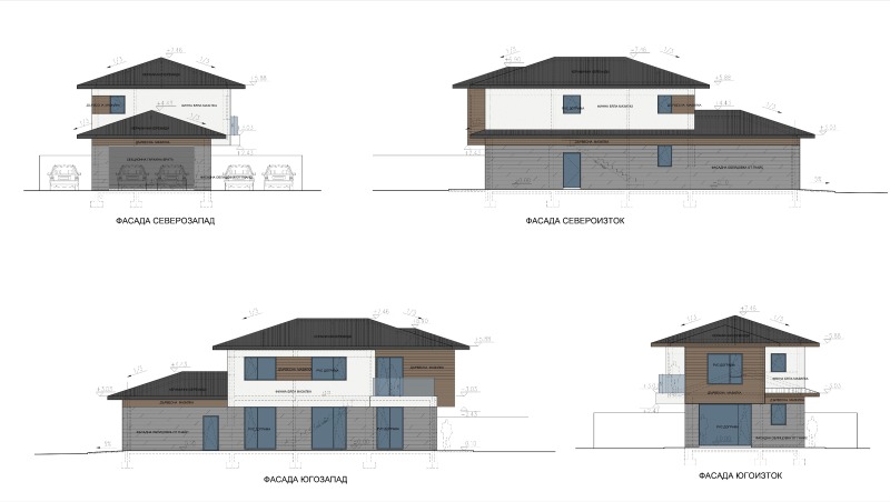 Къщи 3 основни типа: А 223м2, Б 202м2 и В 181м2, с възможност за промени по дизайна и размера на къщата според нуждите на клиента;