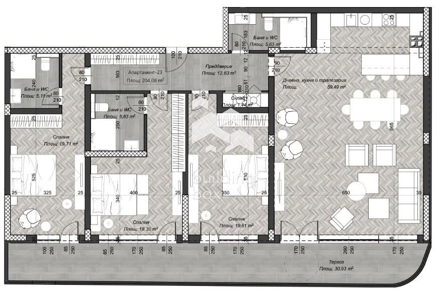 Билдинг Бокс предлага за продажба четиристаен апартамент в новострояща се сграда в сърцето на столицата.
