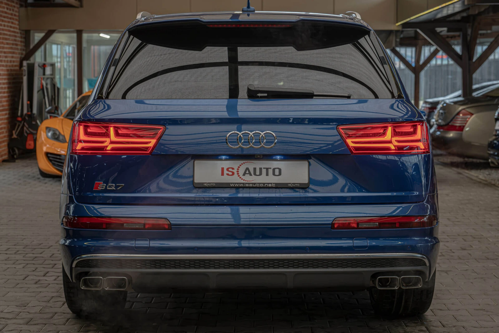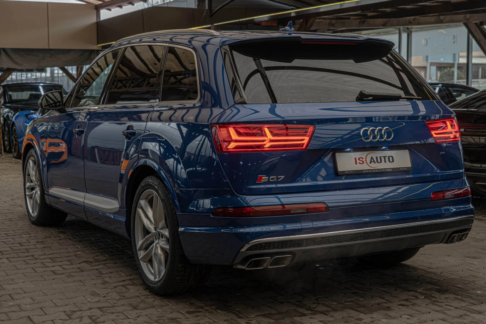 Наличен Audi SQ7 4. 0TDI Специално оборудване: Теглич с асистент за ремарке, Audi connect (интернет базирани услуги), пакет оборудване: Technology Selection, електрически външни огледала. регулируем, отопляем и сгъваем, с памет, таван от черен плат, защита против кражба на колелата (ключалки на джантите), оптична помощ за паркиране отпред и отзад (APS Plus), мултимедиен интерфейс MMI Navigation Plus с MMI Touch, боя с перлен ефект, камера за заден ход, електрически предни седалки. регулируем (с памет), звукова система