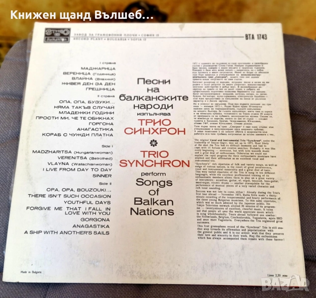 Грамофонни Плочи - Българска Музика: Трио Синхрон - Песни на балканските народи, снимка 1 - Грамофонни плочи - 51618949 Грамофонни Плочи - Българска Музика: Трио Синхрон - Песни на балканските народи, снимка 2 - Грамофонни плочи - 51618949 1/2