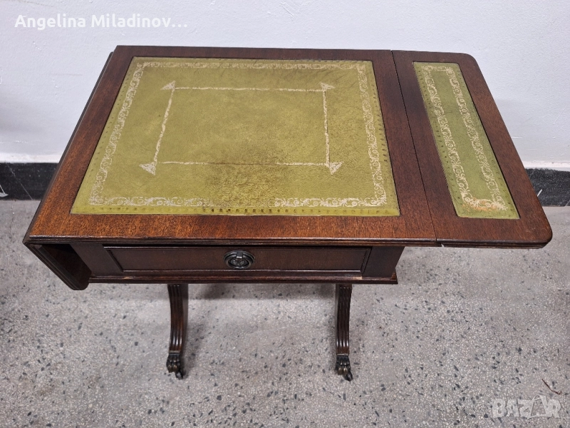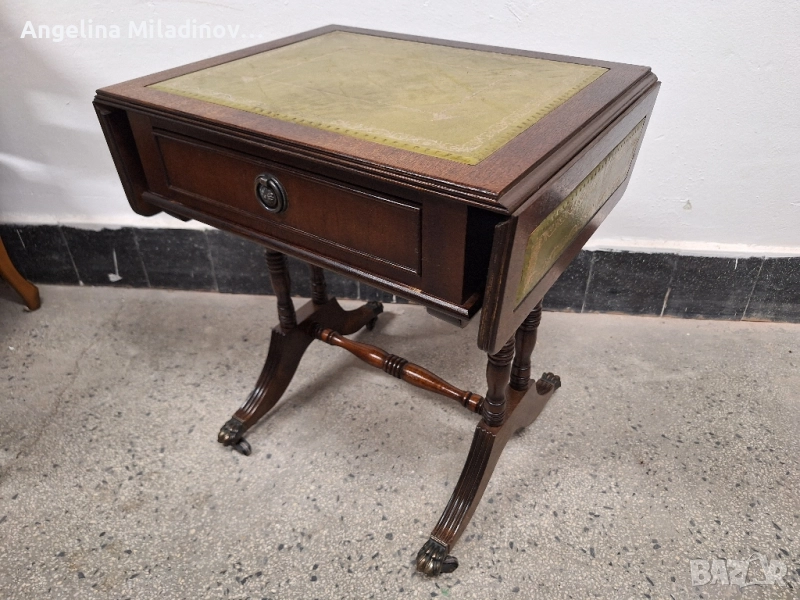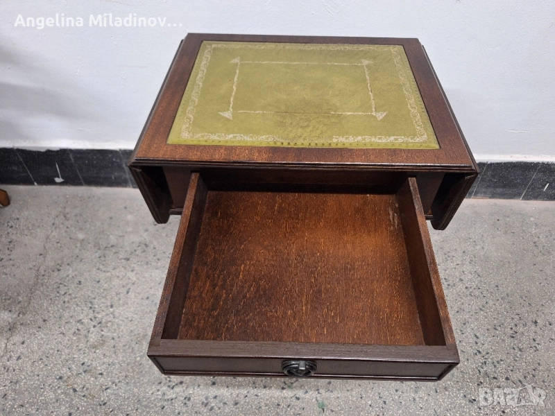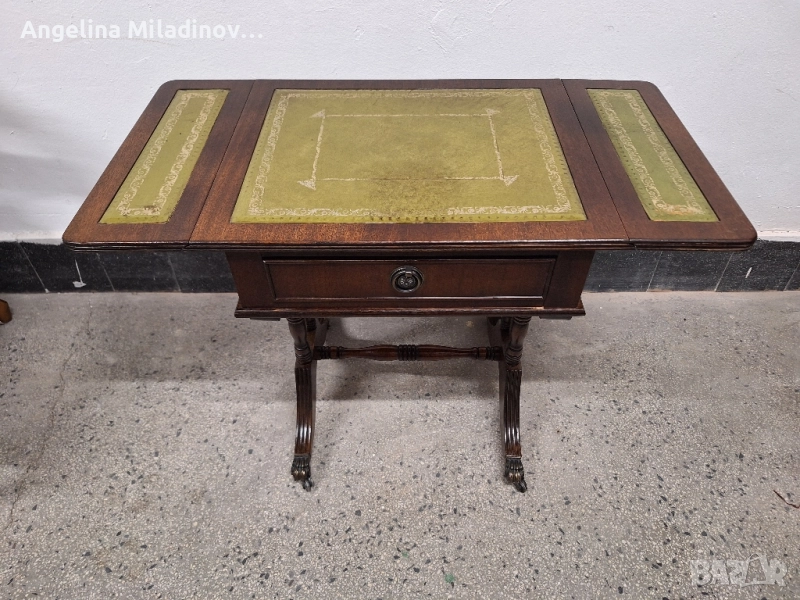 Антична маса с естествена кожа. Антична дъбова маса, внос от Дания. Кокетна разтегателна маса с чекмедже, месингови колелца и естествена кожа. Може да се разтегне от едната или от двете страни, според желанието ви. Отлично състояние. Разгледайте и другите ми обяви. Размери: Дължина - 48 см. Ширина - 38 см. Височина - 53 см. Разтегната - 73 см. Цена - 220 лв. 112,48 €.
