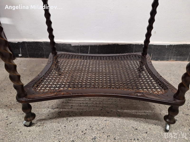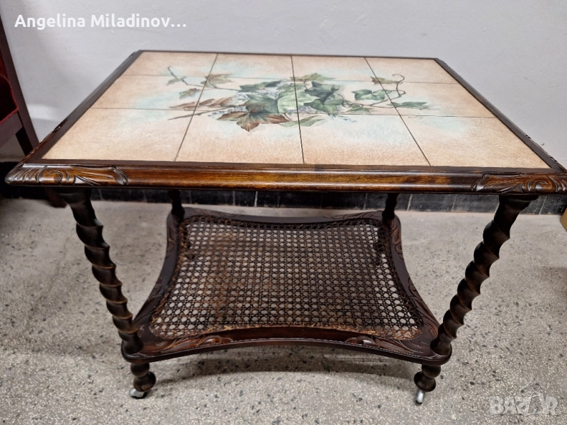 Винтидж маса с плочки и ратан. Масата е изцяло изработена от дъбова дървесина, порцеланови плочки и богата дърворезба, внос от Дания. Многофункционална маса на две нива с естествен ратан. Колелца за допълнително удобство подчертават красотата на масата Ще подчертае различното в дома ви. Разгледайте и другите ми обяви. Предлагаме и изгоден транспорт за цялата страна. Размери: Дължина - 68 см. Ширина - 53 см. Височина - 57 см. Цена - 240 лв. 122,71 €.