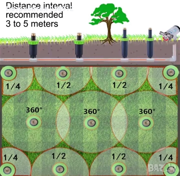 Радиус на пръскане: 3-4,5 м.