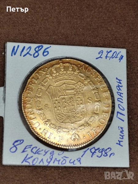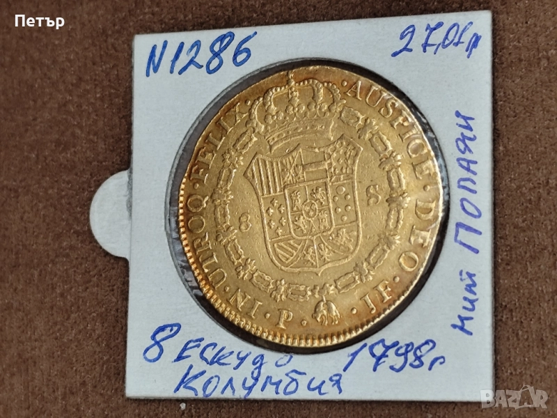 8 Ескудо 1798 год, Испанска империя, колония Колумбия,крал Фернандо VII, монетарница Попаян.