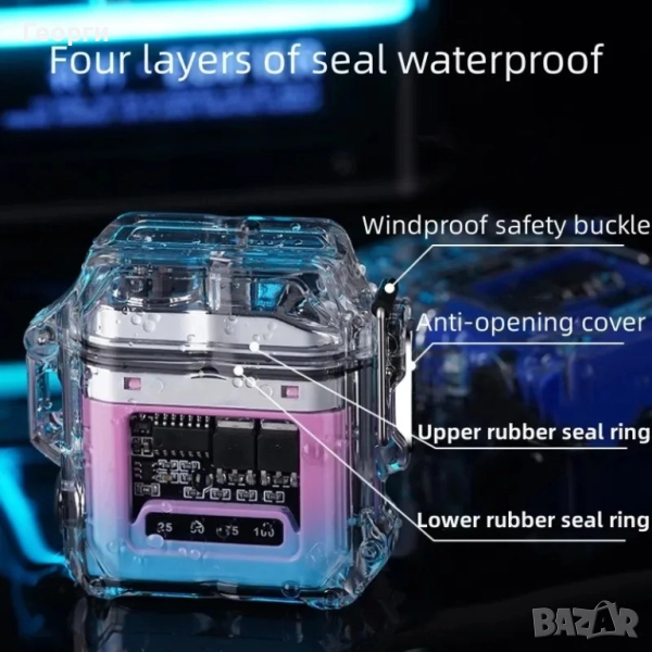 Нова електронна запалка с прозрачна обвивка и двойна дъга, USB TYPE-C бързо зареждане( ако се наложи, може дори и във влак да я заредите с зарядното за телефон ), осветление, плазмена запалка, електрическа, водоустойчива, ветроустойчива.