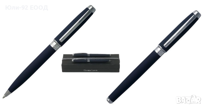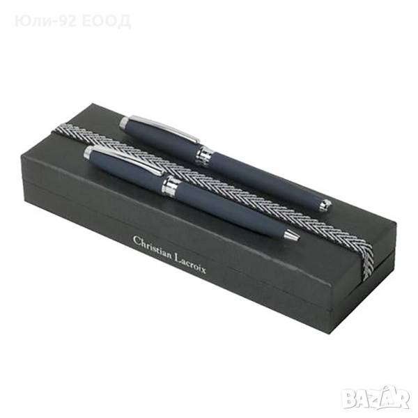 * цвят на писане на химикала син, а на ролера черен