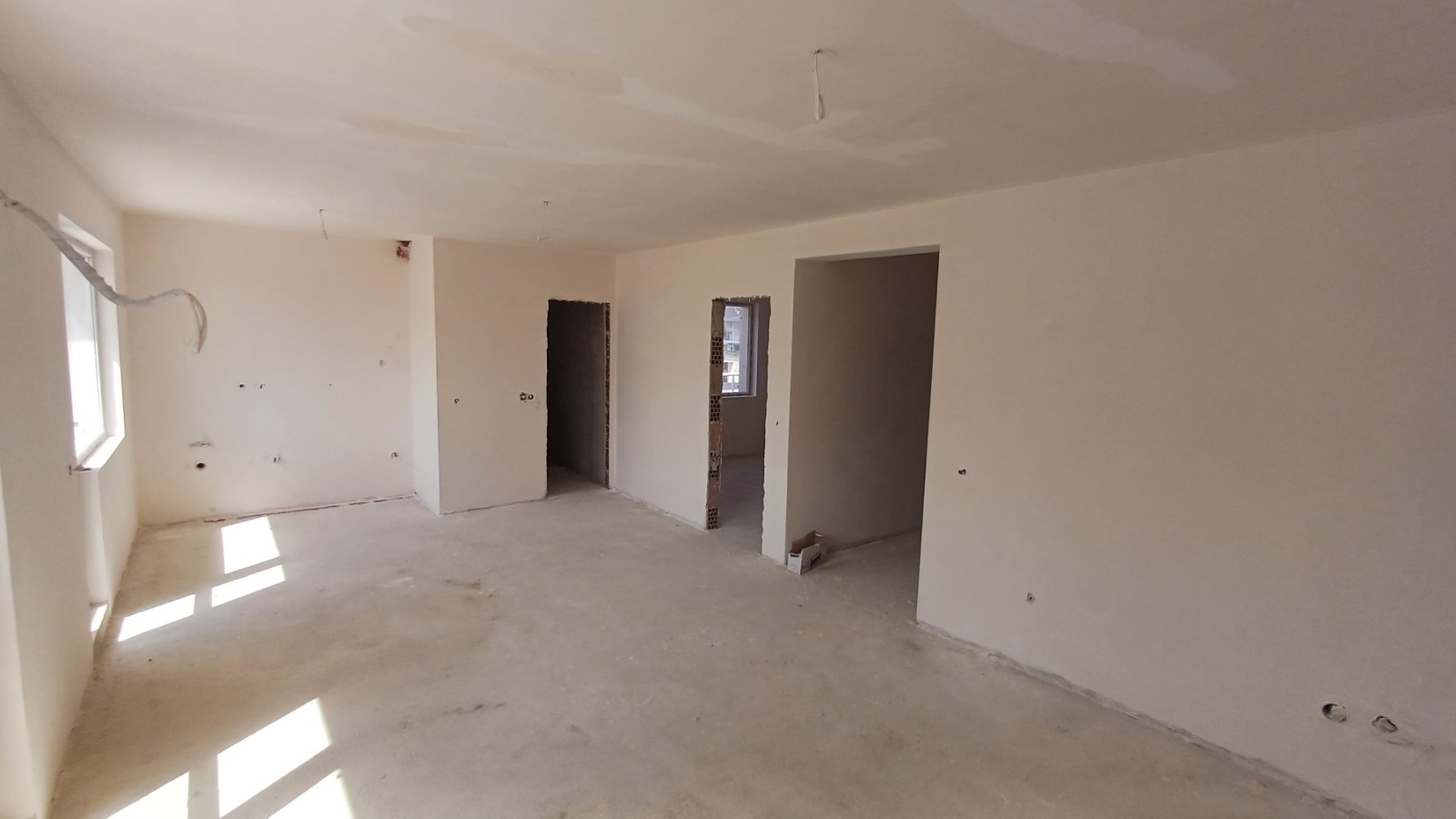 Агенция 'Доминита' предлага за продажба изключително просторен и светъл тристаен апартамент с големи слънчеви тераси. Жилището е разположено на целия трети етаж в малка и кокетна кооперация. Сградата е нова, съвременна и красива. Общо 8 апартамента. Без такса за обслужване! Тиха и широка улица с възможност за безпроблемно паркиране. Апартаментът се състои от две спални, просторна дневна с кухненски бокс и два санитарни възела. Много голяма тераса към дневната и една обща тераса за двете спални. Възможност за преустройство на дневния тракт и получаване на още една малка спалня!! Завършеността на жилището е на етап 'тапа' и има възможности за интериорни корекции! Много добро изложение (юг-запад), което обещава светлина и топлина през зимните месеци! Изключително подходящ имот за целогодишно ползване! Разумна цена! Реф.номер A-1495340. Наличен ключ в офиса на агенцията! Заповядайте на оглед по всяко време.
