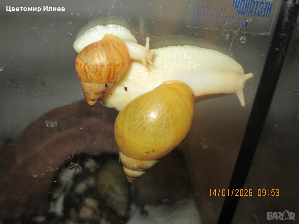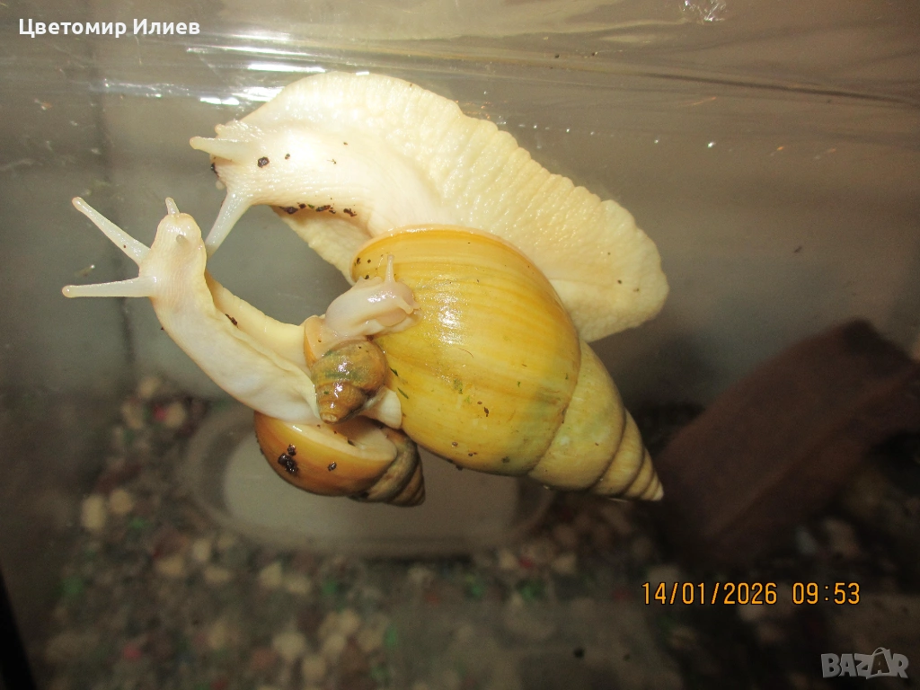 3 снимки са вече пораснали охлюви на 2 години, а на следващите са тези на