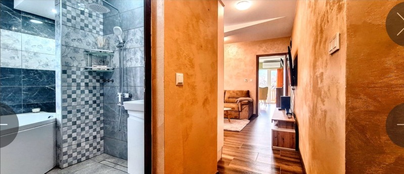 Напълно обзаведен уютен апартамент с прекрасна гледка към планината, състоящ се от: Входно антре, Баня и тоалетна с хидромасажна вана (кърпи, халати, душ гелове, шампоани, тоалетна хартия, сешоар ).
