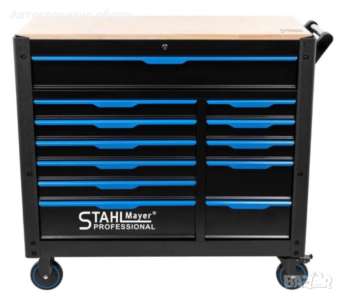 количка за инструменти STAHLMAYER, изработена от висококачествена хром-ванадиева стомана, създадена специално за автосервизи, работилници и домашни гаражи.