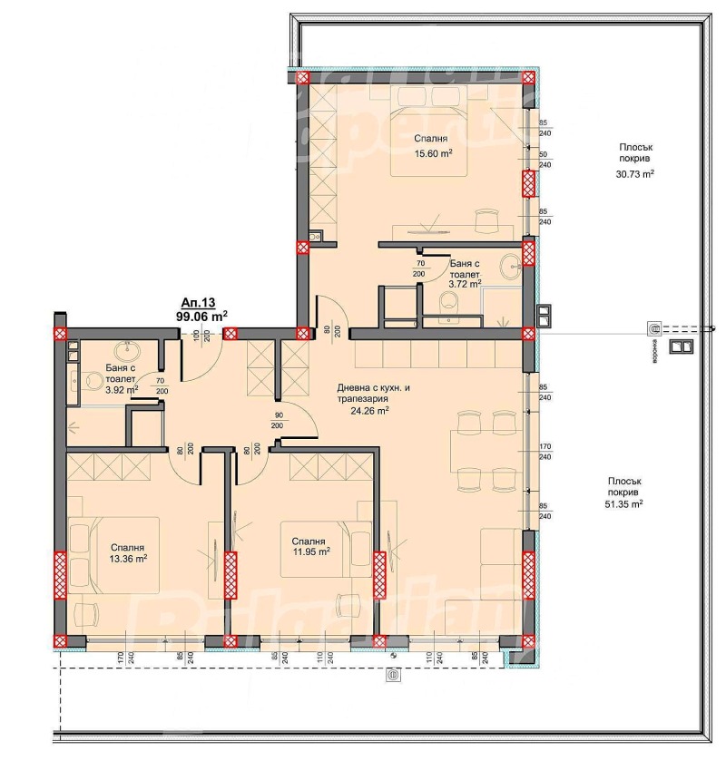 Покривна тераса 82.08 кв.м.