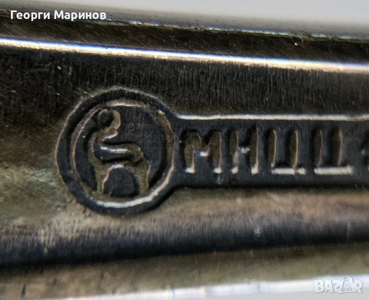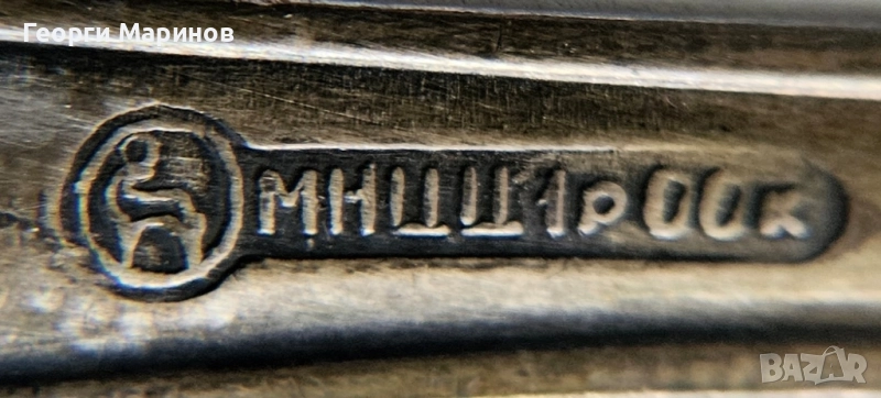 Продава се комплект от 6 посребрени лъжици за хранене от мелхиор. Лъжиците са марка МНЦ и са произведени в СССР в периода 1960 - 1970 г. Дължината на лъжиците е 18 см. С означението МНЦ и жерава като маркировка се маркират приборите произведени от завода в Украйна.