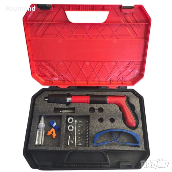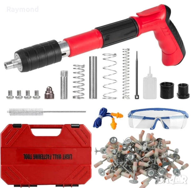 Ръчен пистолет за забиване на пирони с комплект аксесоари и подарък пирони