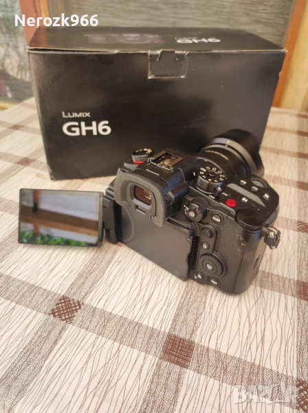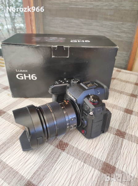 Фотоапарат Panasonic Lumix GH6 с Обектив Panasonic Leica DG Vario-Elmarit 12-60mm f/2.8-4 в много добро състояние в комплект с кутия,книжка,оригинални кабели,оригинална батерия,зарядно към комплекта давам и 1бр.малка LED лампа и 1бр.дъмпи батерия-външна.Фотоапарата и обектива мога да ги дам и поотделно.