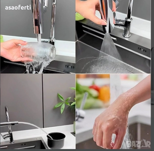 4в1 Многофункционален накрайник за кухненска мивка съвместим с всички смесители, четири режима на работа и въртящата се на 360 градуса глава.