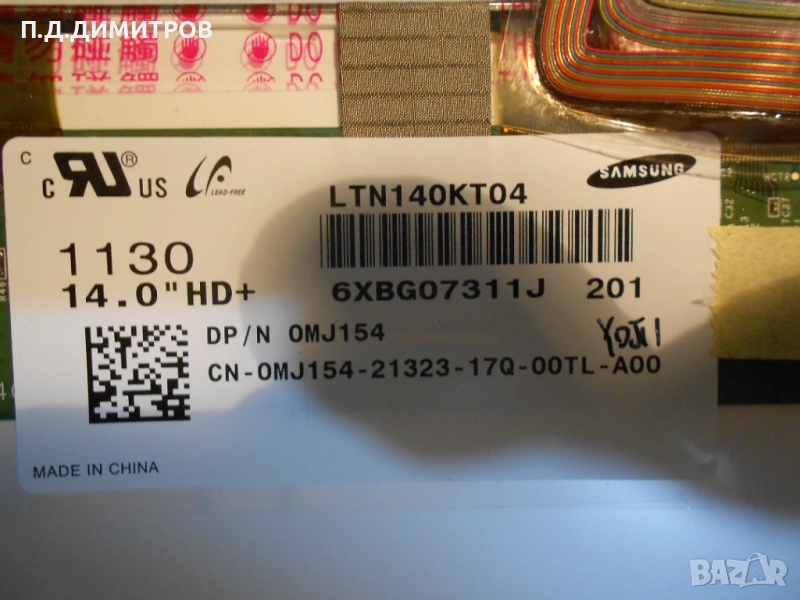 сн.Модела на матрицата е видима от сн. Модел LP141WX614”1 WXGA D/PN OGO 22H CN-OGO22H-5652-037UA0