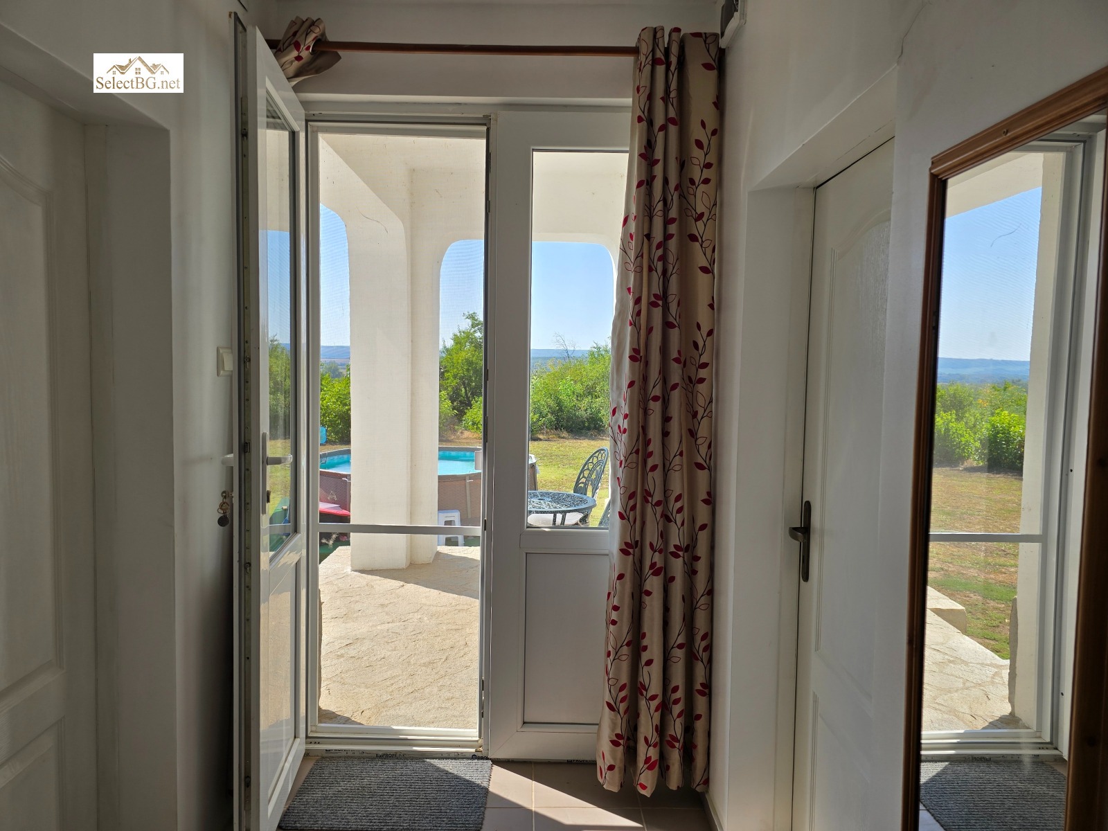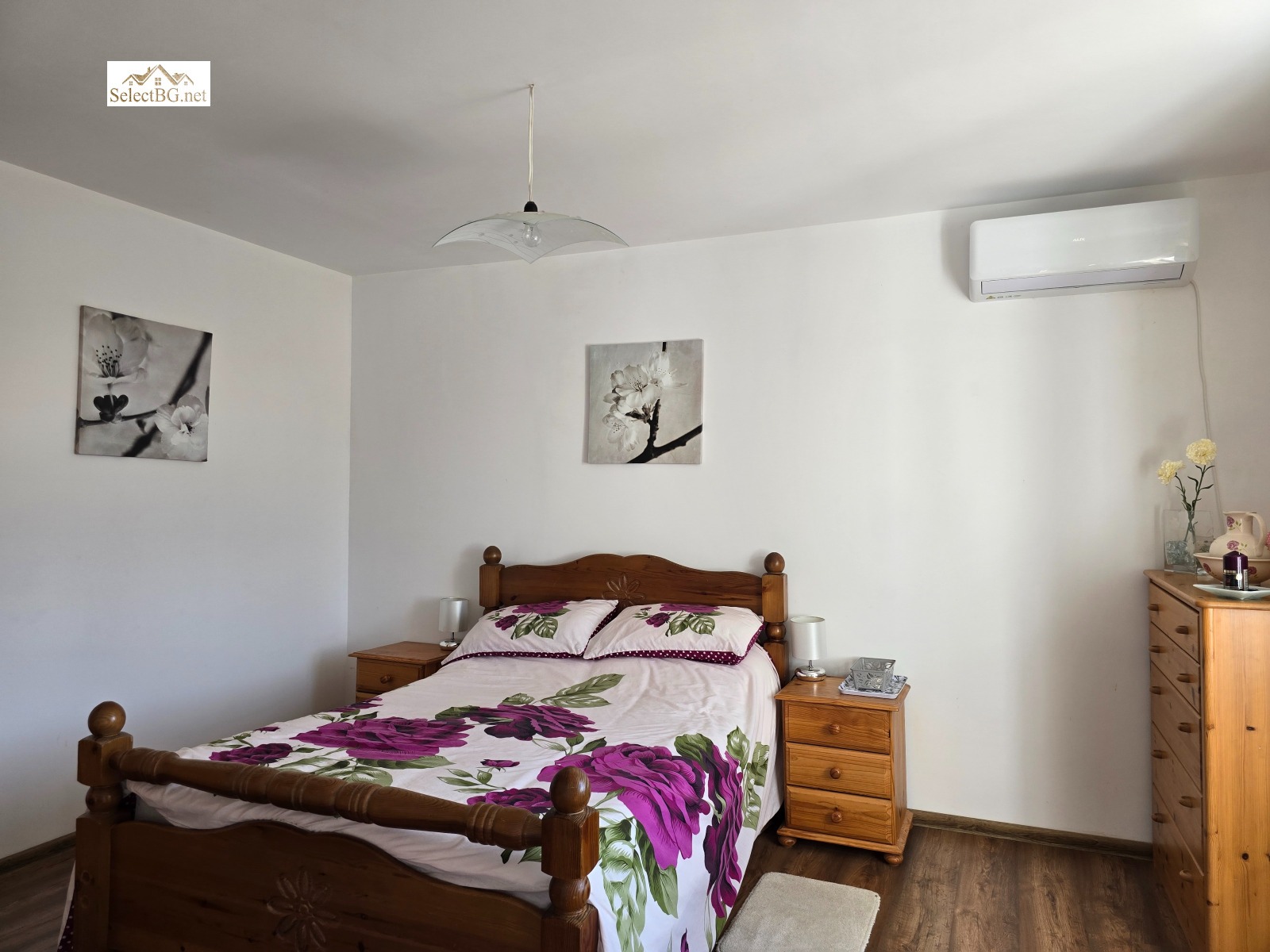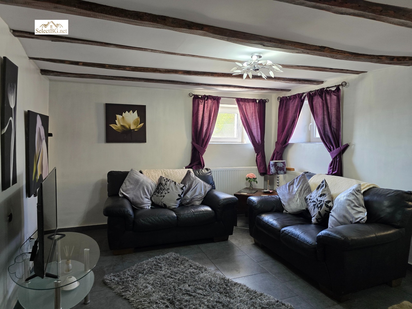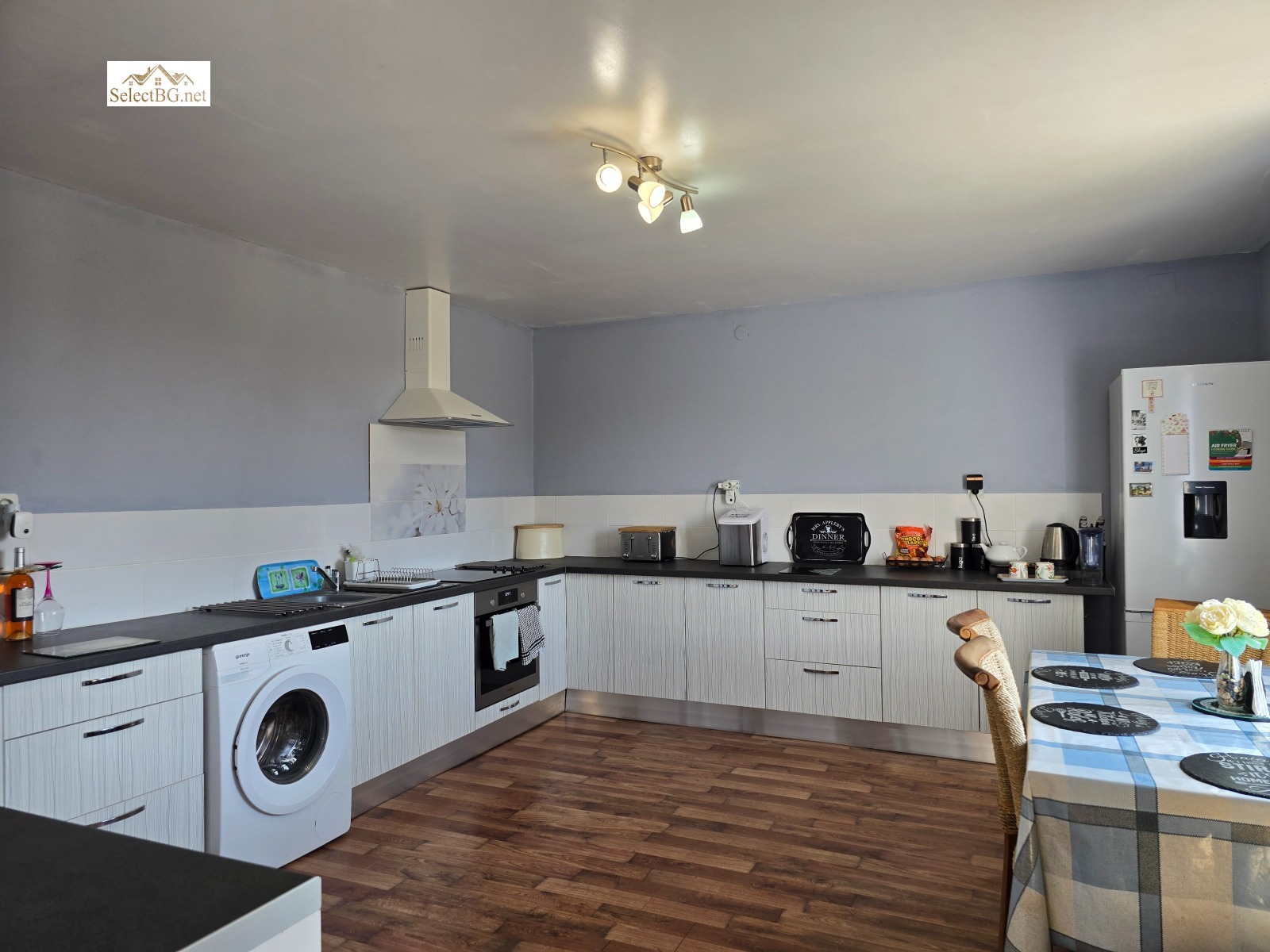 Къщата е двуетажна масивна с едноетажна пристройка към нея като общата жилищна площ е около 150 м2. На приземния етаж с вход през пристройката има просторна напълно оборудвана кухня с трапезария и баня с тоалетна. През входното антре се влиза директно в основната част на къщата , където на долния етаж има сервизно помещение с камина ( локално парно ) и просторна холова част ( механа ). По дървени стълби се стига до горния етаж на къщата , където има 3 спални и коридор с директен излаз към градината. Имотът се продава обзаведен.