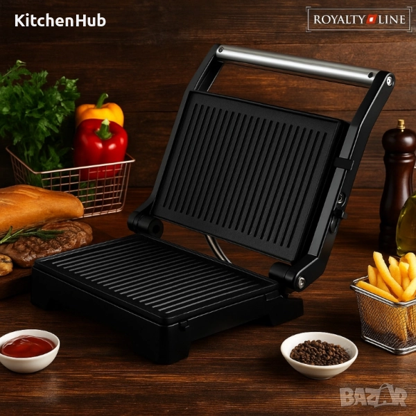 Тостер грил Royalty Line RL-PM1000 - Компактен грил и сандвич преса 2 в 1