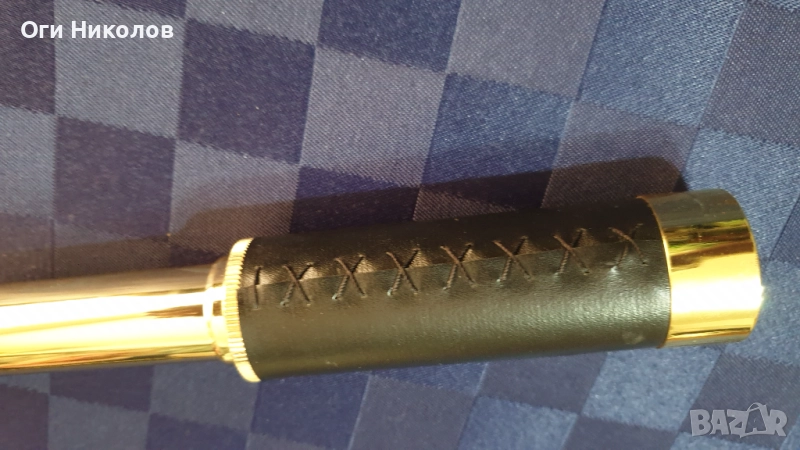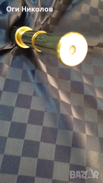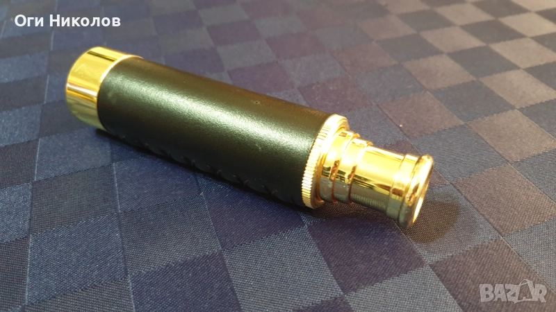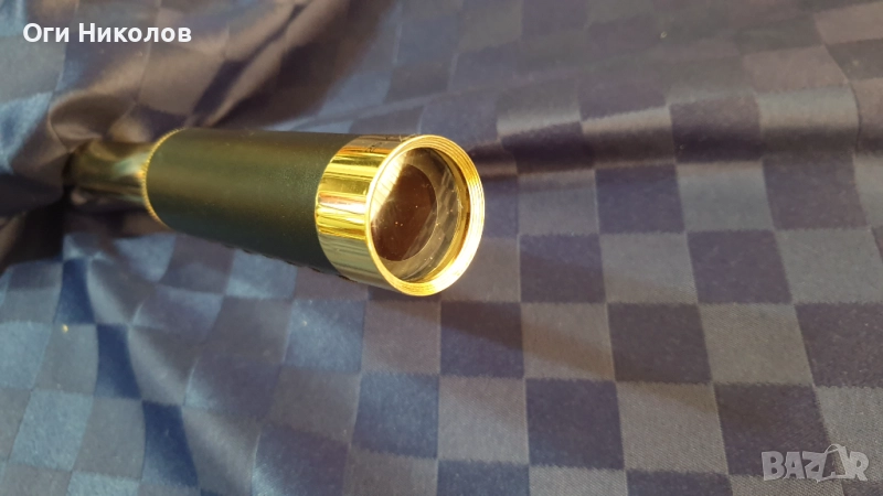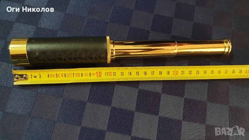 Месингова реплика на далекоглед.Отлично състояние.Дължина при разпънато състояние -28 см.Дължина при прибрано състояние - 14 см.