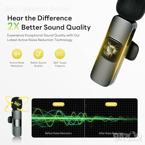 Нов Лавалиерен безжичен микрофон с клипс за видео и стрийминг TikTok YouTube запис