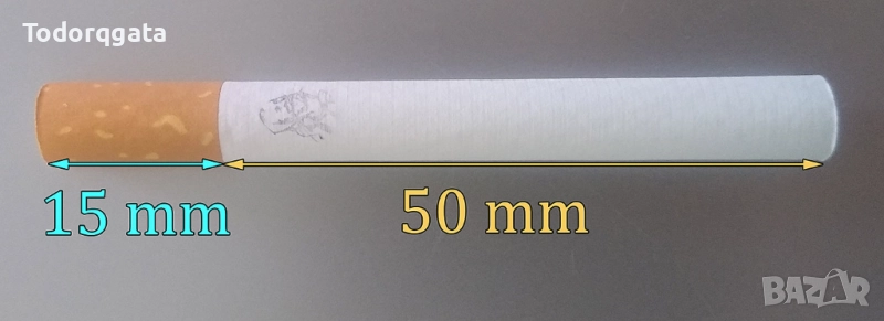 Обща дължина на цигарата 65мм, дължина само на филтъра 15мм.