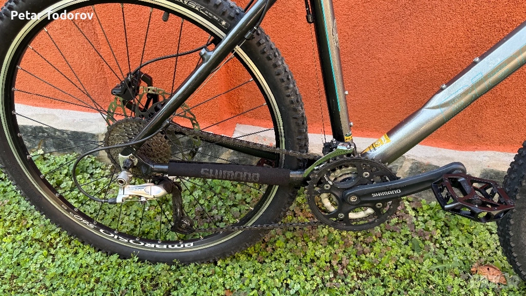 5. Скоростна система- заден дерайльор Shinano Deore XT 9 скорости(9x3), ЧИСТО НОВИ команди Shimano Deore и преден дерайльор Shimano Deore, касета Shimano Deore, верига KMC