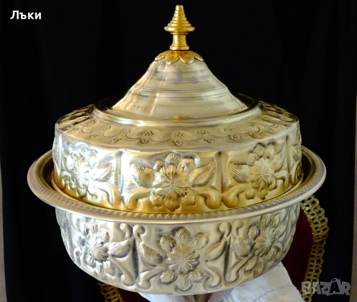 Мароко.Дръжката на капака е дебело позлатена с 24 карата злато.Луксозен съд за