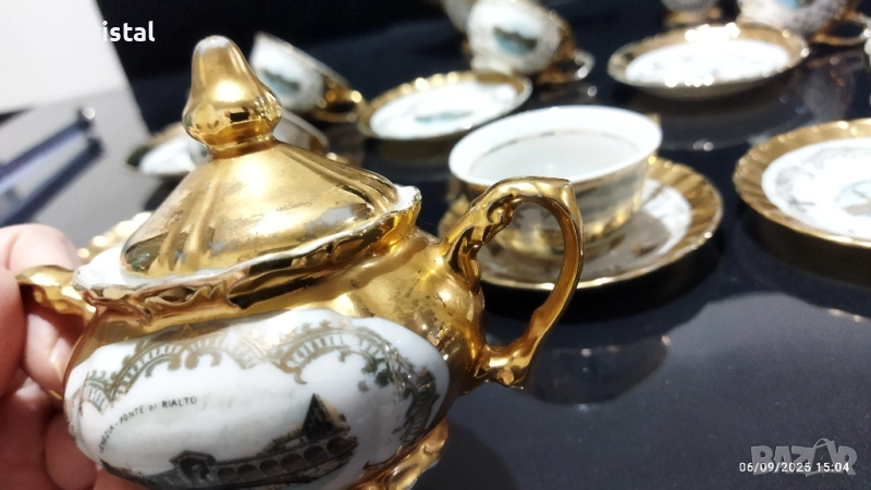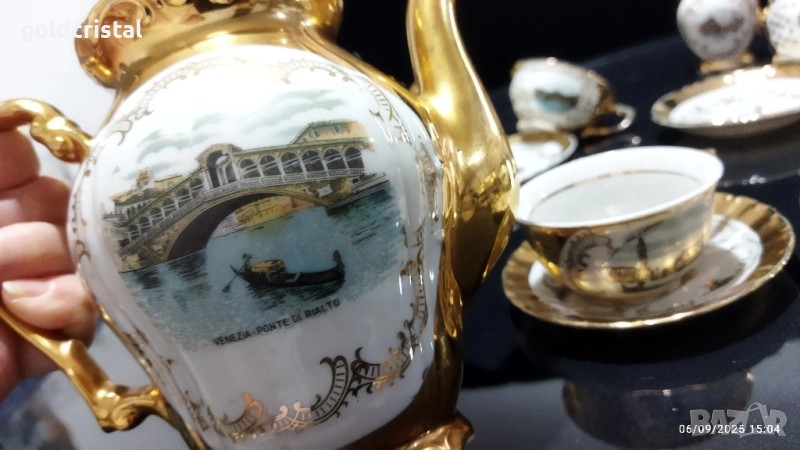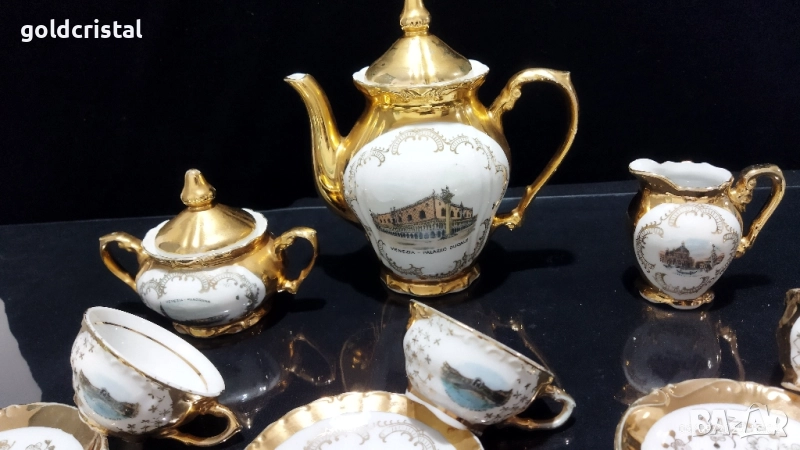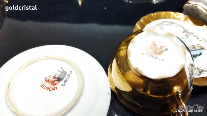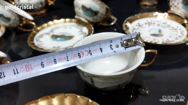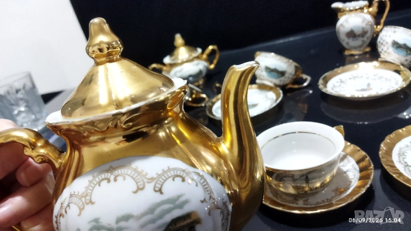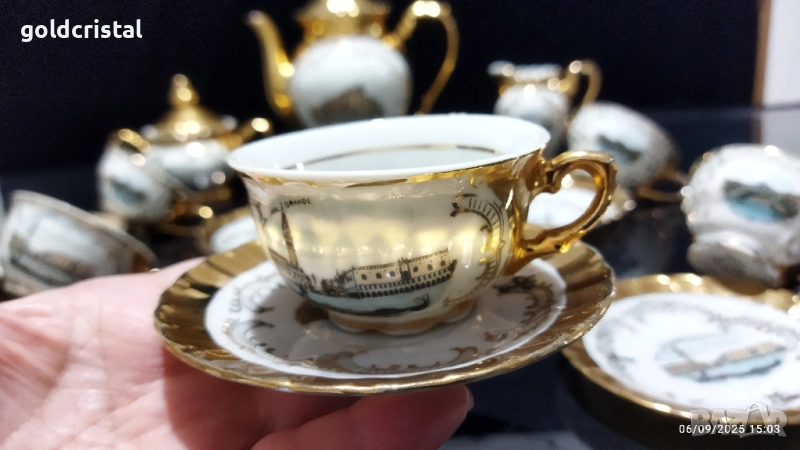 старинен немски порцелан чаши за кафе чайник заханица и латиера 6 броя чаши 0.60мл 6 броя чинийки с много позлата , нормални следи от времето без чукнато и пукнато сервиз комплект сет лот ретро арт декор винтидж колекция стари старинни антикварни със предмети обзавеждане за дома и семейството подходящи за подарък за ценители и колекционери