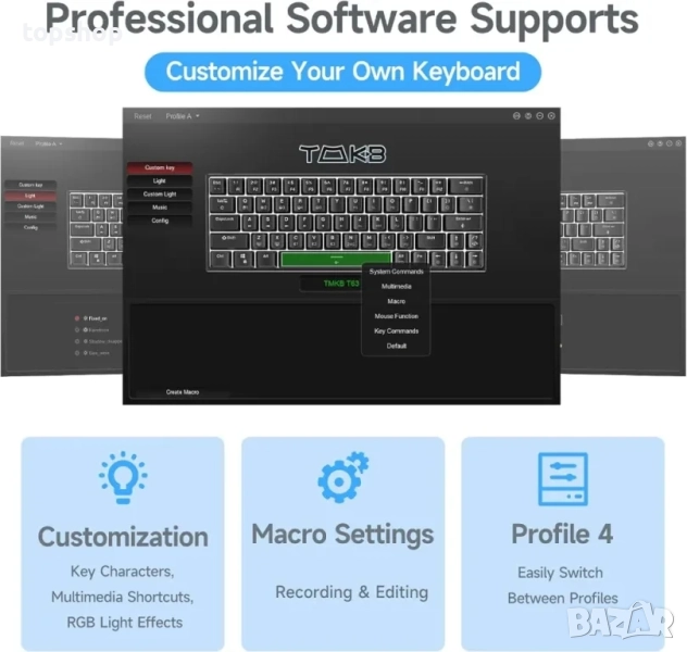 НОВА, ТЕСТВАНА Геймърска клавиатура TMKB T63, механична, безжична с