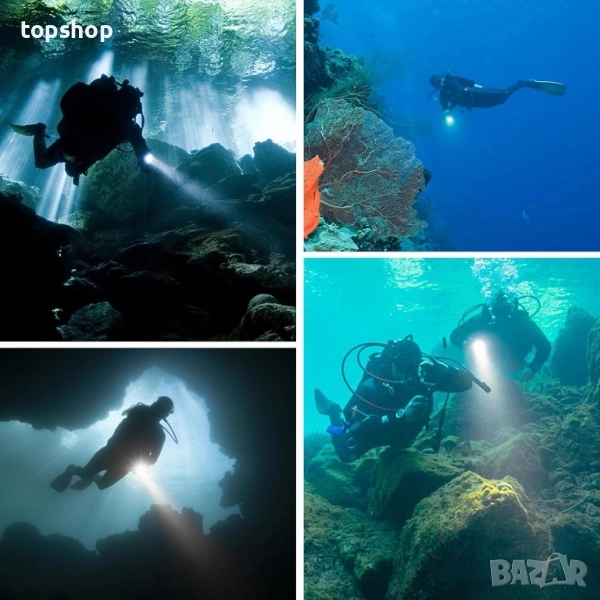 【Многофункционални подводни лампи】: Идеални за гмуркане с акваланг, шнорхелинг или екипировка за лодка, а също така полезни за къмпинг, туризъм и дейности на открито. Комплектът включва 1*3000mAh акумулаторна батерия, USB-C кабел за зареждане, резервен О-пръстен, връзка за връзка и ръководство.