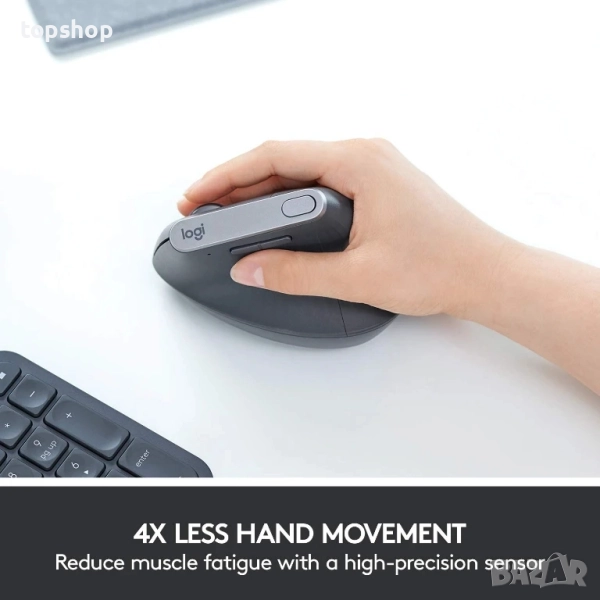 Нова вертикална безжична мишка Logitech MX Vertical – ергономичен дизайн, намалява мускулното напрежение, преместване на съдържание между 3 компютъра с Windows и Apple, акумулаторна, графит