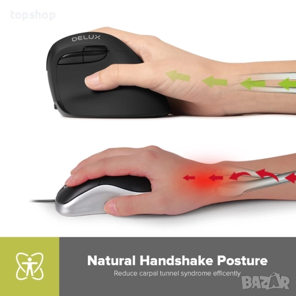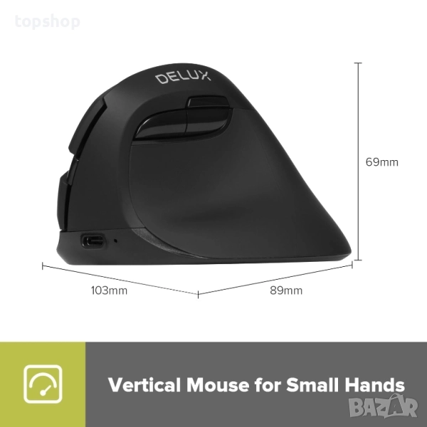 Чисто нова безжична вертикална мишка DeLUX, малка, презареждаща се, безшумна ергономична мишка ...