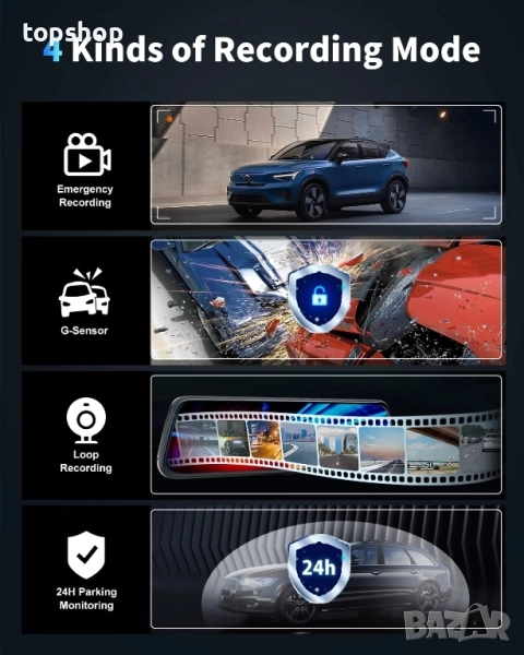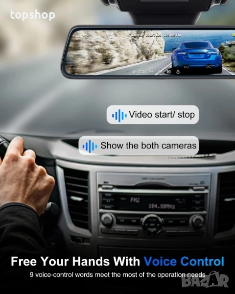 ?Гласово управление без ръце и завъртане на огледалото за заден ход - Можете да използвате гласови команди за достъп до видеорегистратора, докато шофирате, като държите ръцете си на волана за по-безопасно и лесно шофиране. Функцията за завъртане на огледалото за заден ход позволява регулиране на посоката на гледане, което прави този автомобилен рекордер перфектно съвместим с микробуси, пикапи и камиони и др.