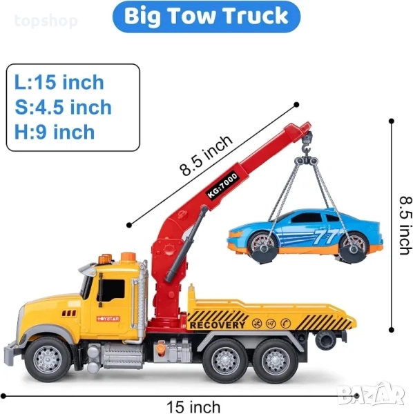 Теглещите камиони с размери на играчката 15 x 4,5 x 9 инча, големи теглещи камиони, Материал: ABS пластмаса