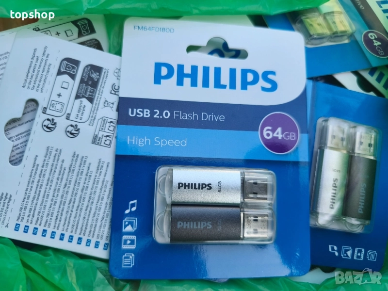 Чисто нови зспечатани USB flash 64gb Philips 2 packs 2 броя в пакет, цена за пакет от 2 броя