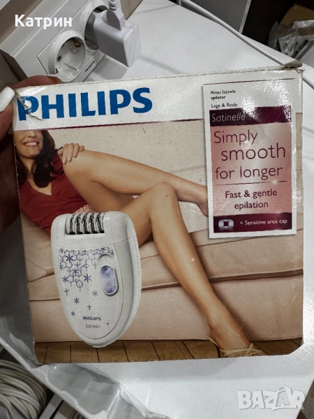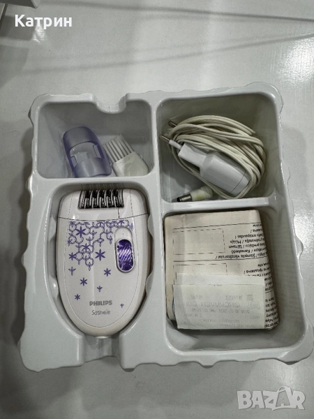 Епилатор Philips Satinelle HP6421/00. Епилаторът работи, зарядното не. Оставила съм зарядното за да се вижда какво трябва да се вземе за да се използва. Предлагам зарядно на Huawei което работи с епилатора. Цената с него е 15лв.