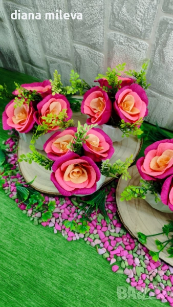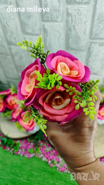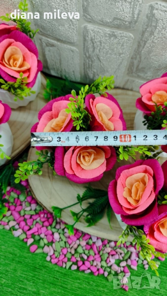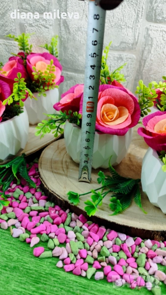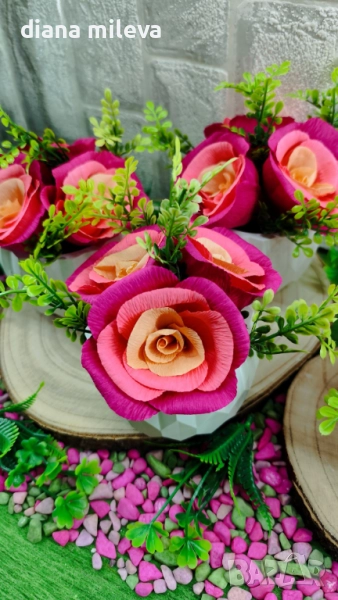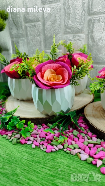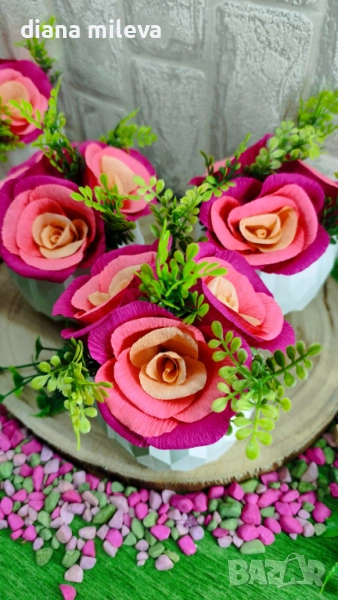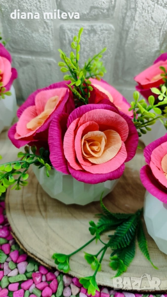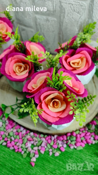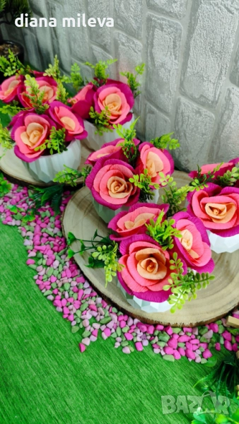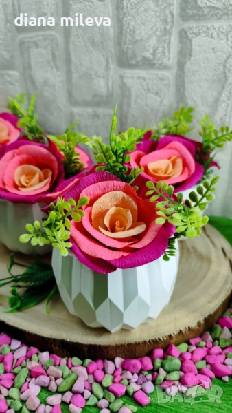 Гипсокерамични кашпи с рози от креп хартия!! → Обява 51630322
