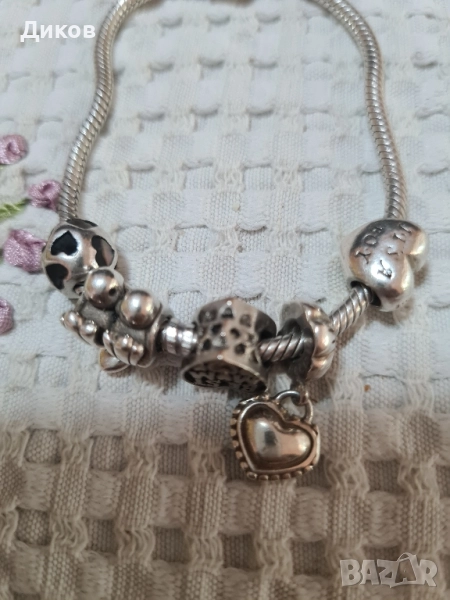 Гривна с талисмани два броя от тях са оригинални на пандора внос от Германия. БЕЗ КОМЕНТАР НА ЦЕНАТА.