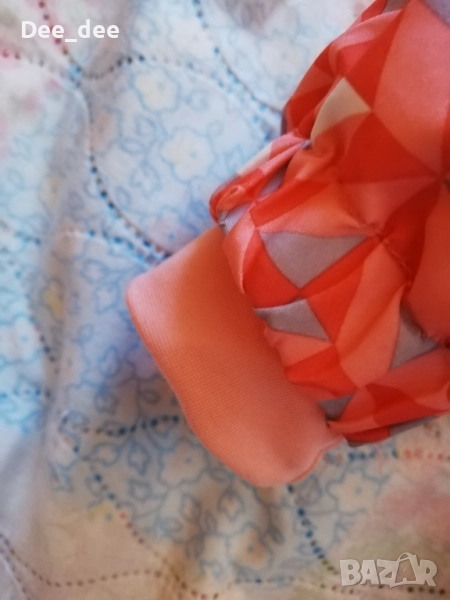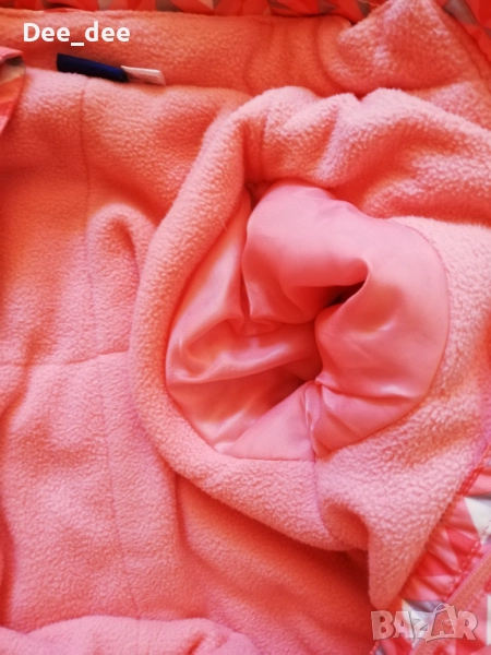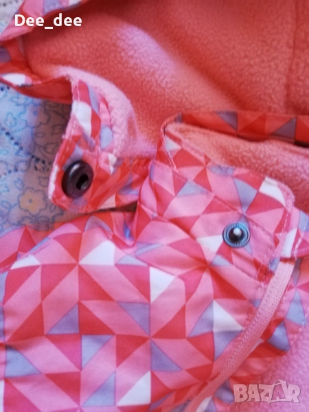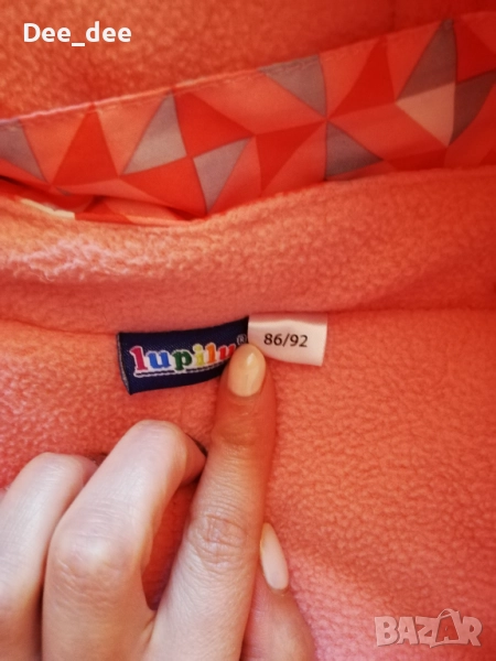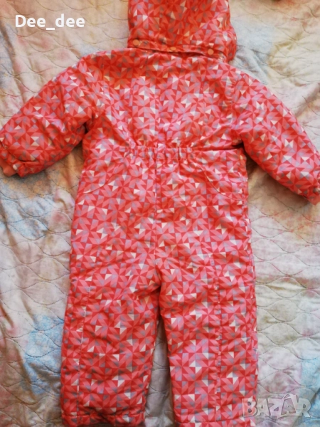 Като размер е 86/92, но мисля че е уголемен и става за 98. Има на краката ластик, а на ръцете по-дълъг ръкав. Отвътре е леко ватиран. Единия ластик, който прикрепя крака отдолу (този със копчетата на 5 снимка) го няма.