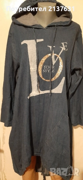 ДАМСКА ДЪНКОВА РОКЛЯ С КАЧУЛКА - Размер XXL