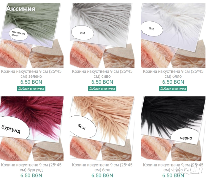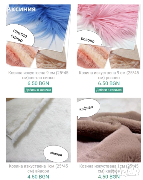 Дължина на косъма и цени за парче 24*45 см: