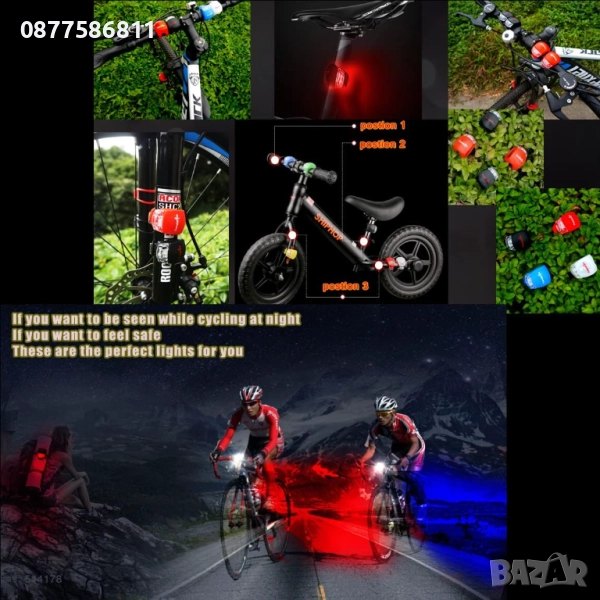 НОВ LED ФАР/СТОП ЗА КОЛЕЛО ТРОТИНЕТКА. ЛЕД STOP СВЕТЛИНА/ФАРЧЕ ЗА ВЕЛОСИПЕД ФАРЧЕ ЗА ВЕЛОСИПЕД +