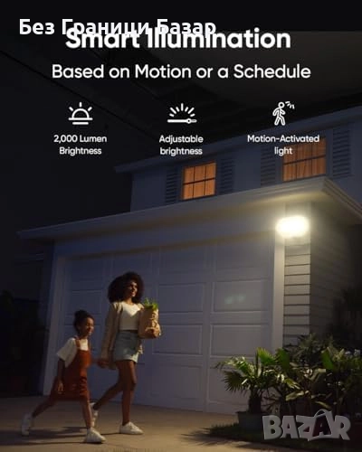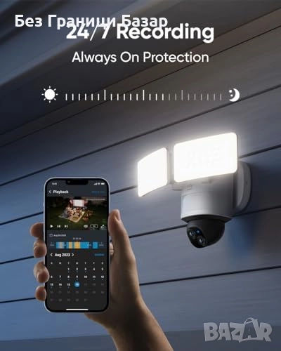 Нова Външна охранителна камера с прожектор 2000 лумена, 3K, панорама 360°