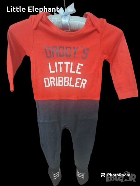 Цяло ромпърче за 12-18 мес момченце"Daddy's little dribbler",personalised,Англия/ново → Обява 51632737