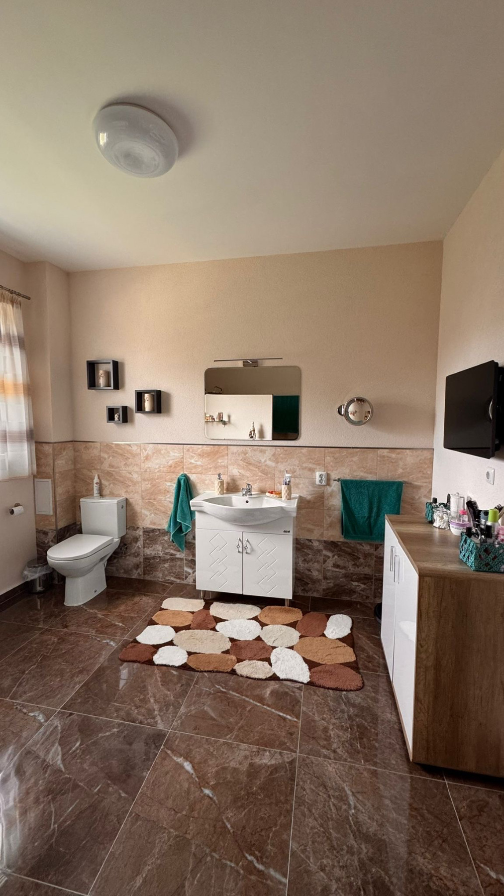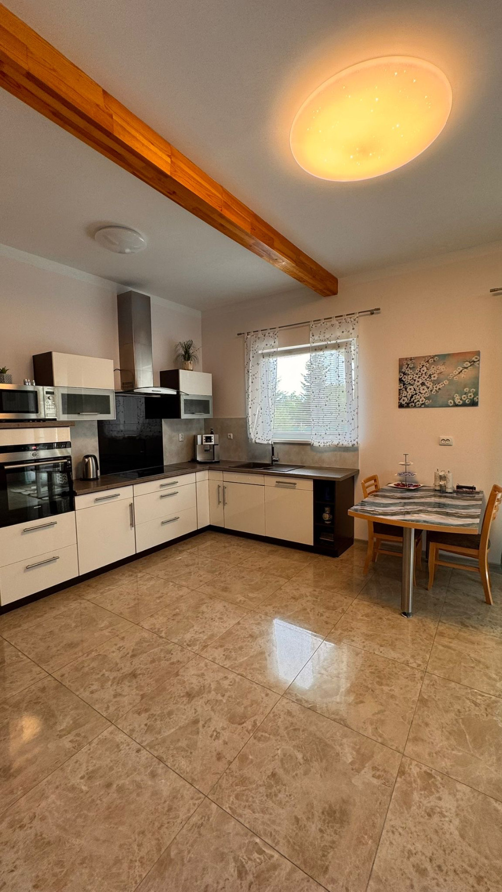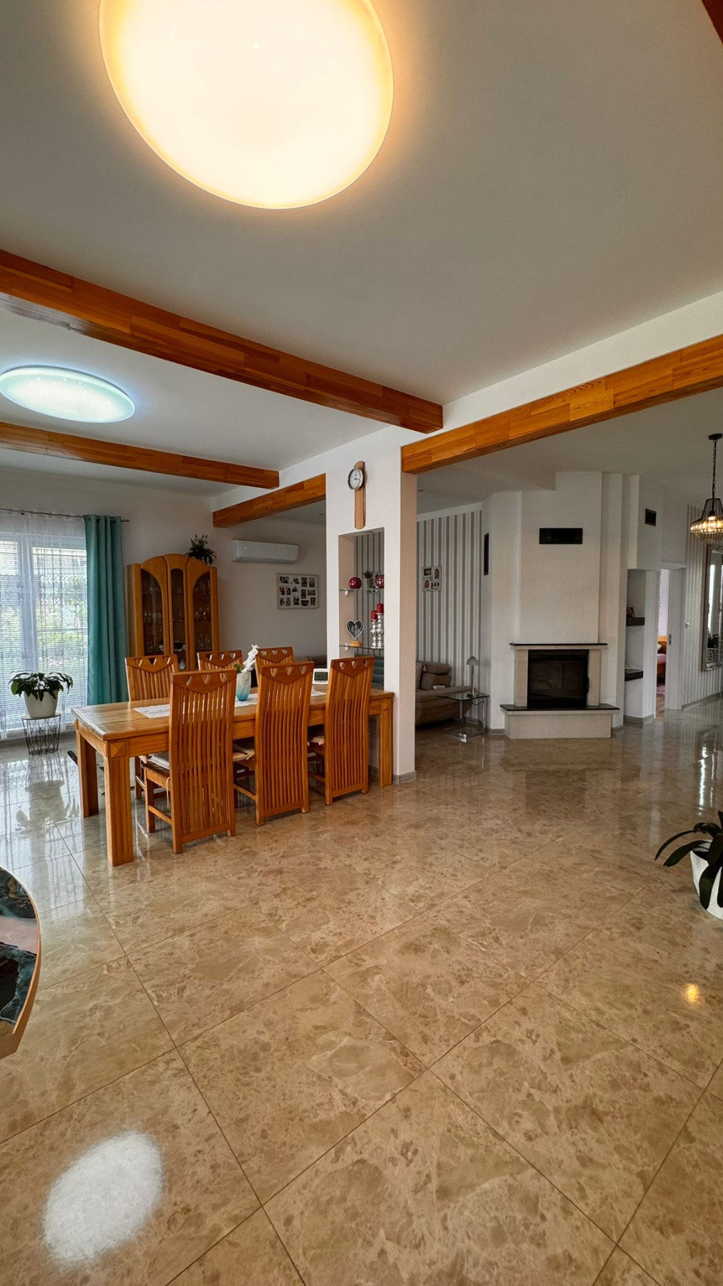 Имота е построен през 2020г с площ 197м2 на два етажа. На първият етаж има дневна с кухня и камина, две спални и баня с тоалетна. На вторият етаж имаме още две спални с баня и тоалетна. Красиво озеленено просторно дворно място с много дръвчета и площ 1300м2 в което са разположени и лятна кухня и работилница с площ 24м2 и басейн.