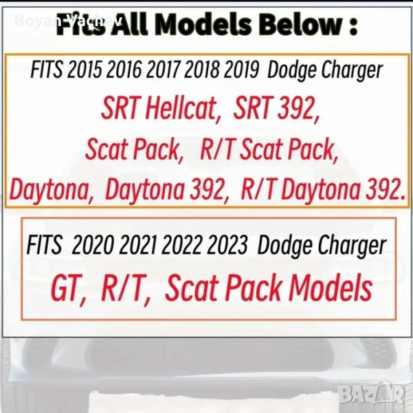 DODGE Charger, srt Hellcat/RT Scat Pack/Daytona/RT 392, 2015-2023, Цвят (блестящ черен)