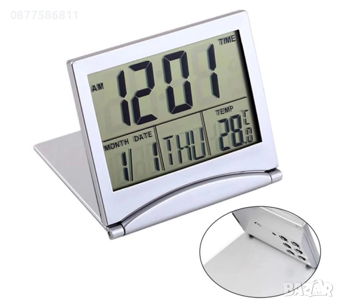 Модел 3. Настолен LCD дигитален ЧАСОВНИК с температура и календар. Будилник ЦЕНА - 8€